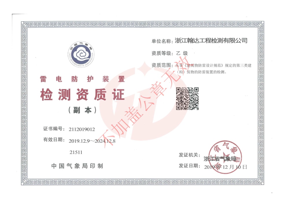 雷電防護(hù)裝置檢測(cè)資質(zhì)